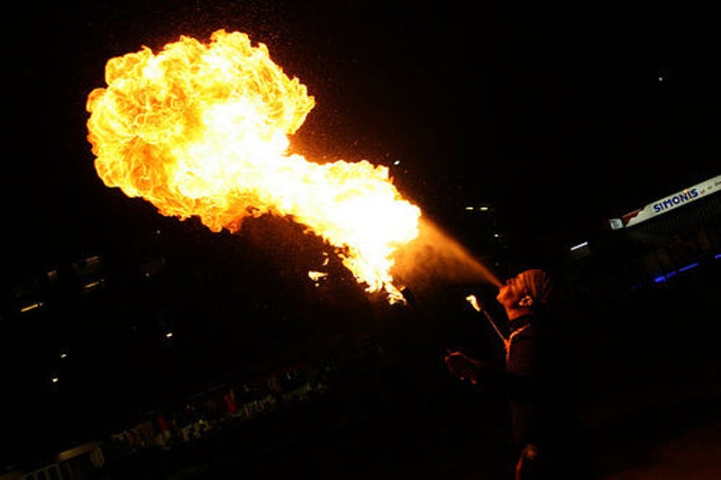 Wij zijn bezig om een Vuurspuger naar Hem te krijgen op Halloween by Nights